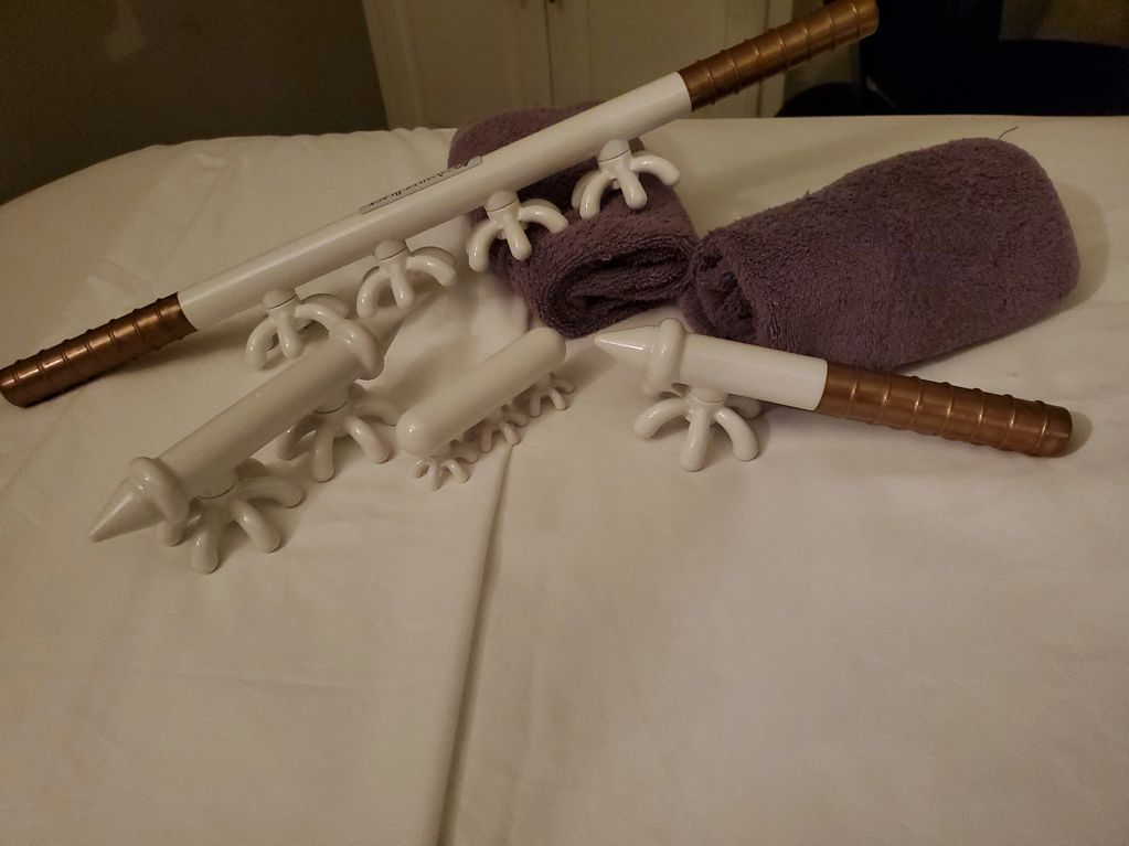 Bodywork using a specialized tool created and developed by Ashley Black (called the FasciaBlaster) to release the fascia, ease tension/ pain, improve flexibility, posture, circulation and the appearance of cellulite. Reduction in pain, changes to physical appearance, and increases in flexibility happen over time, although dramatic changes can occur after just one session. Changes depend on the condition of your fascia and where the fascial adhesions are located. Diet, hydration, physical activity and other habits also influence the timeline for changes.